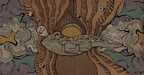 During the first couple of tracks (Seven Insignia and Arctic Cascades) the guitars showcase a variety of techniques. Sometimes lifting you to the clouds on the wispy repeating swirls of Lydian thermal pockets, other times subduing the listener with distorted chordal marches of grandeur. This continues into the third track Paraphernalia Of Sublimation but with some exotic flavours creeping in. By the fourth track (Desert Eschaton) I’m sitting on a rug in a bustling Moroccan side-street market outside a belly dancing club. Anyone who has picked up on my tastes would know I’m a sucker for the incorporation of Eastern music into contemporary contexts, and this track satisfies that proclivity in spades. What’s that, sorry? Instrumental music is boring? Sorry I couldn’t hear you over Ninhursag giving birth to Shiva with Ghandi on cord-snipping duty (*).